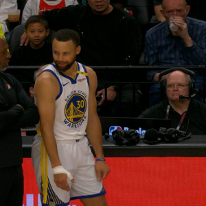 Steph returns to Warriors-Blazers game after thumb injury