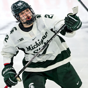 Michigan State’s Isaac Howard holds the 2025 Hobey Baker Award (photo: Jim Rosvold). ST. LOUIS — Michigan State forward Isaac Howard was named the 2025 winner of the Hobey Baker…
