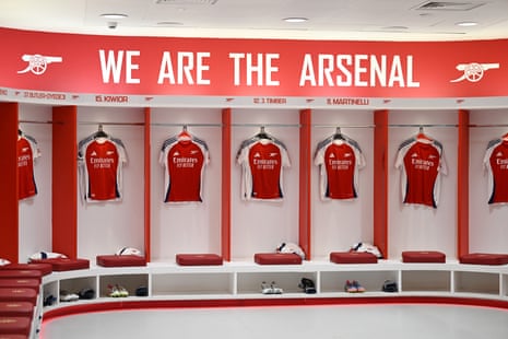 A peek inside the Arsenal dressing-room prior to this evening’s match against Brentford. Photograph: Stuart MacFarlane/Arsenal FC/Getty Images
