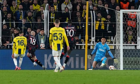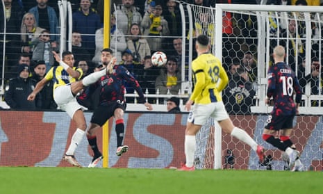 Alexander Djiku hooks in an equaliser for Fenerbahce! Photograph: Andrew Milligan/PA