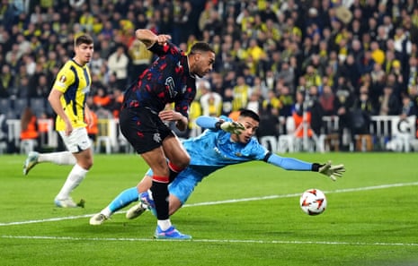 Fenerbahce 0-1 Rangers: Huge chance for the hosts! It’s a great cutback but En-Nesyri is leaning back as he takes his powerful shot and it’s over the bar.