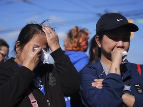 - Two people react at a memorial after a vehicle drove into a crowd during a Filipino heritage festival in Vancouver, British Columbia, Sunday, April 27, 2025.Photo by Lindsey Wasson /AP