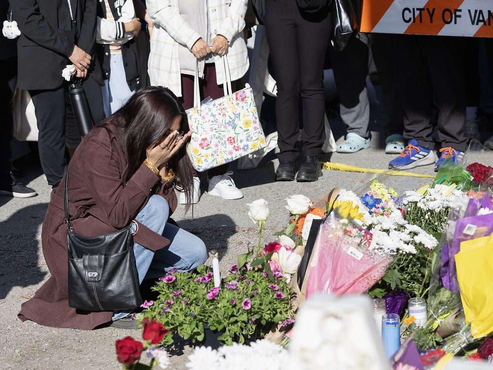 - A woman places flowers on the scene where at least 11 people were killed by a speeding vehicle on Fraser St during Lapu Lapu Day celebrations in Vancouver, B.C., April 27, 2025.Photo by NICK PROCAYLO /PNG