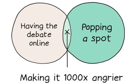 Ever tried to squeeze a zit and made it approximately 1,000 times angrier? That’s what having an argument online sometimes feels like, observes Edith Pritchett in this week’s cartoon.