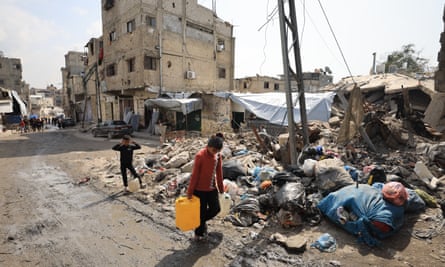 Palestinian children carrying home drums of water in eastern Gaza City this week. Photograph: Anadolu/Getty Images