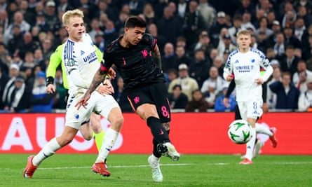 Class told. Chelsea grew more menacing, Palmer almost scoring a stunner from long range, and they soon doubled their lead. Cucurella was involved again, pressing high to win possession, and Copenhagen were in trouble when Nkunku sent George through. The 19-year-old had a second assist in as many games when he teed up Fernández to guide a lovely shot past Ramaj.