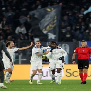 ROME, ITALY – FEBRUARY 15: Boulaye Dia of Lazio celebrates scoring his team’s second goal with teammates during the Serie A match between SS Lazio and Napoli at Stadio Olimpico…