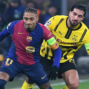 Raphinha (left) and Emre Can (right) will look to lead their sides to the Champions League semifinals. / IMAGO/Revierphoto Barcelona and Borussia Dortmund will meet for the second time this…