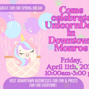 The Downtown Monroe businesses are throwing a great, most fun ever, Unicorn Day ever from 10 a.m. to 3 p.m. on Friday, April 11! It promises to be “sparkling with…