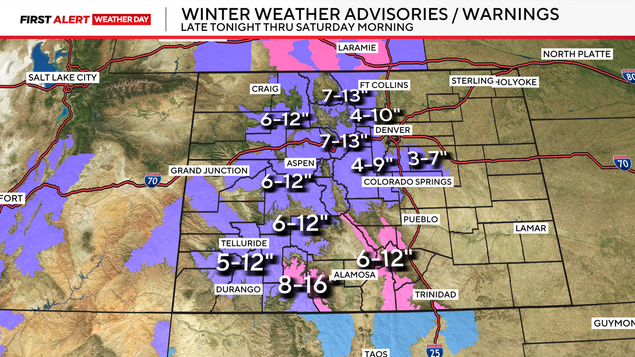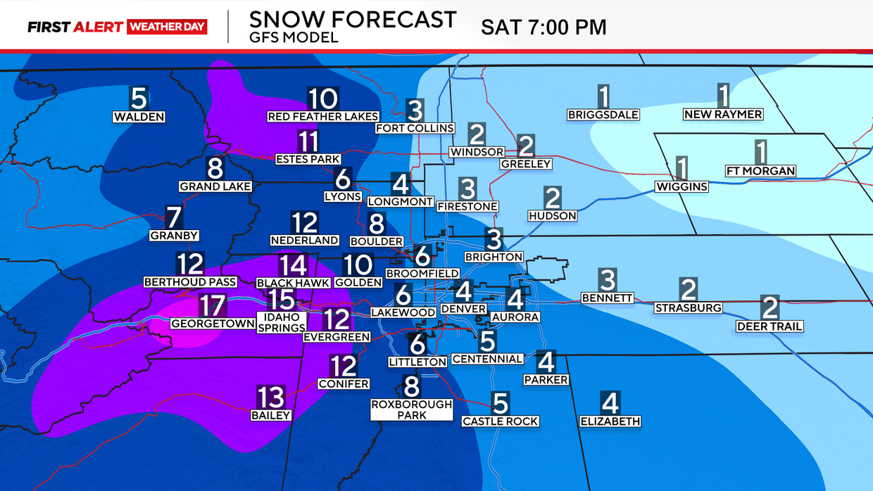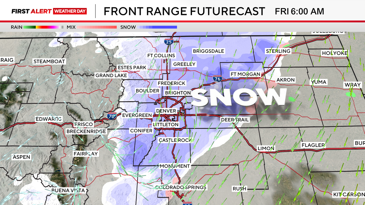 There will be two bursts of snow over the Front Range. Overnight Thursday into Friday morning with another big surge from Friday afternoon through Saturday morning.