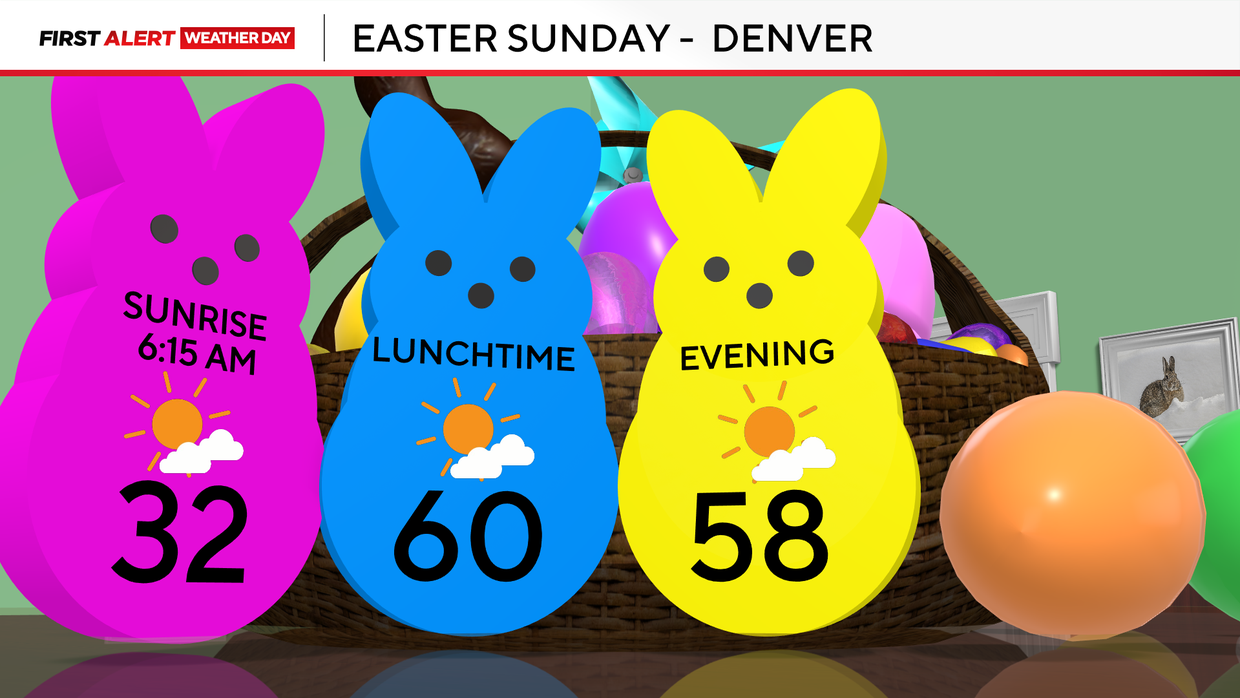 Conditions will improve Saturday afternoon into Sunday with a nice Easter on the way. Sunday should be partly cloudy with a high near 60 for Denver.