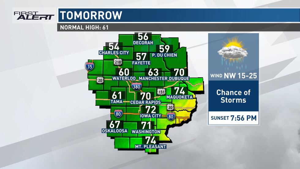 CEDAR RAPIDS, Iowa (KCRG) – Storms move into eastern Iowa tonight. Some of them could be strong to severe.