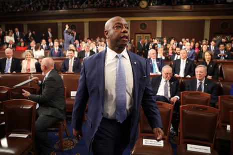 Sen. Tim Scott (R-SC) attends President Donald Trump’s addresses a joint session of Congress. Photograph: Win McNamee/Reuters