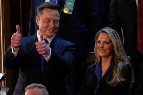 Elon Musk arrives before President Donald Trump addresses a joint session of Congress in the House chamber. Photograph: Julia Demaree Nikhinson/AP