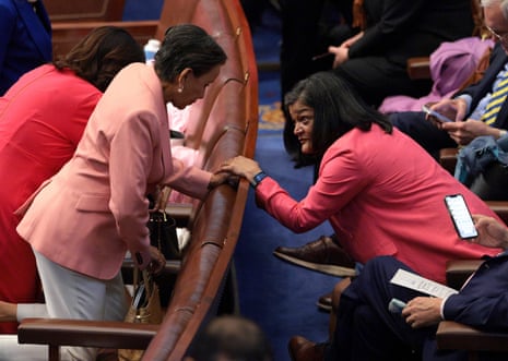 Rep. Nydia Velázquez (D-NY) and Rep. Pramila Jayapal (D-WA) at the US Capitol. Photograph: Kayla Bartkowski/Getty Images