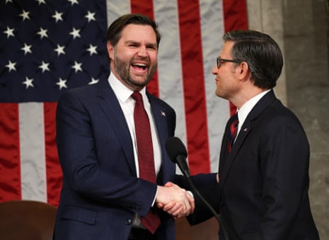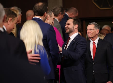 Vice President JD Vance greets members of Congress as he arrives for President Donald Trump’s address to a joint session of Congress. Photograph: Win McNamee/Getty Images