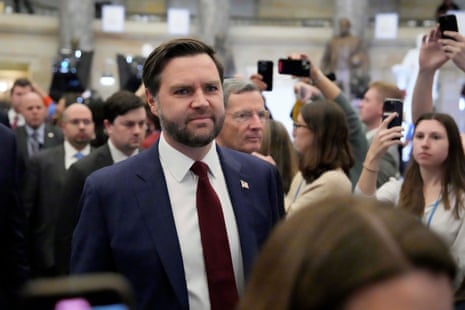 Vice President JD Vance arrives before President Donald Trump addresses a joint session of Congress at the Capitol. Photograph: Ben Curtis/AP