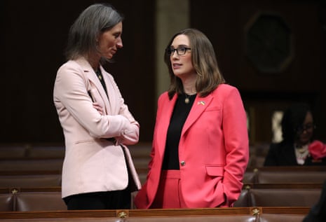 US Representative Maxine Dexter (D-OR) and Representative Sarah McBride (D-DE) at the US Capitol. Photograph: Win Mcnamee/AFP/Getty Images