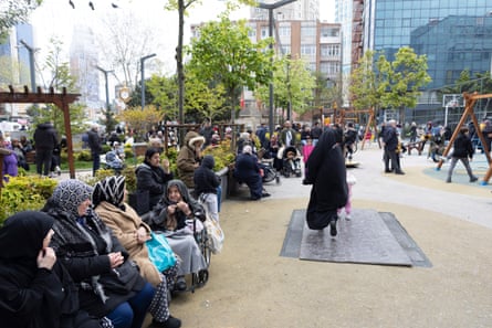 People gather in a park after a powerful earthquake in Istanbul on Wednesday. Photograph: Tolga Bozoğlu/EPA