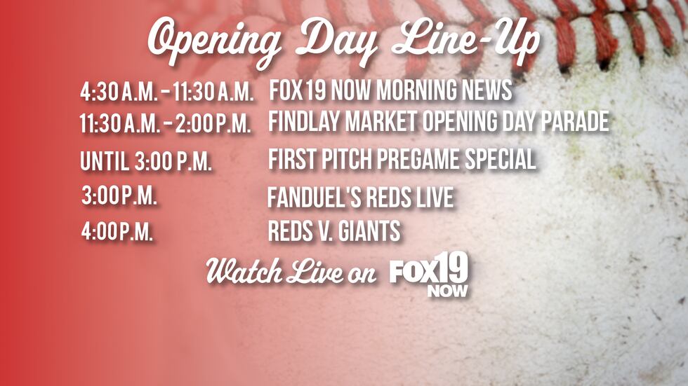 CINCINNATI (WXIX) – Hundreds of thousands of Cincinnati Reds fans will flood the streets in downtown and Over-the-Rhine Thursday for the official start of baseball season: Opening Day.